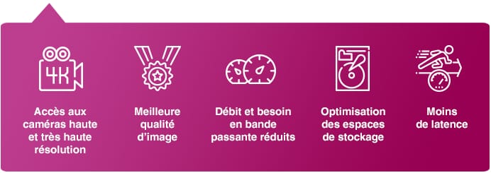 Pour la vidéosurveillance d’un site, la réduction de taille observée sur le fichier de 24 heures entre le codec H.264 et le codec H.265+ est de 82,5 %. Pour la surveillance d’une intersection, la réduction de taille observée sur le fichier de 24 heures entre le codec H.264 et le codec H.265+ est de 79,4 %. Le codec H.265+ peut considérablement diminuer la taille du fichier de la surveillance continue, et ainsi au final réduire les coûts en stockage.